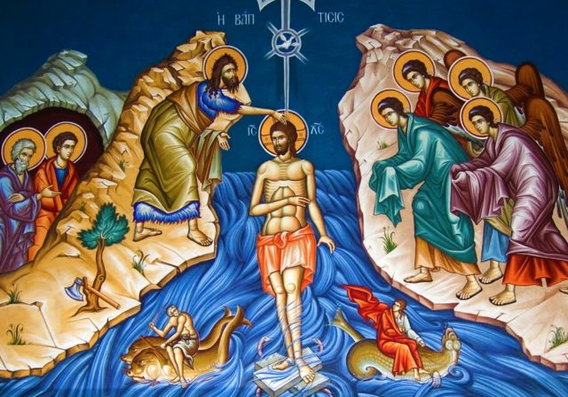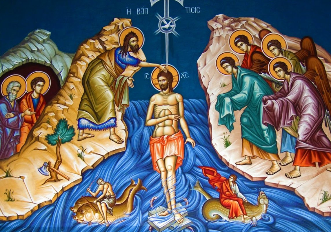 Conform Evangheliilor, când Iisus s-a apropiat de râul Iordan, Sfântul Ioan a recunoscut în El pe „Mielul lui Dumnezeu, Cel ce ridică păcatul lumii”. Deși era fără de păcat, Mântuitorul a cerut să fie botezat pentru a sfinți apele și a restabili harul pierdut prin păcatul strămoșesc al omului. Prin acest gest, Hristos a readus Duhul Sfânt în creație și a început zidirea unui om nou, curățit și înnoit.