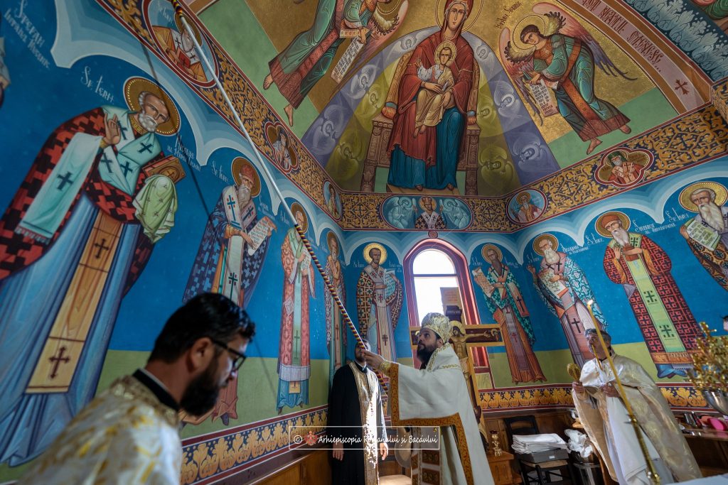 Slujba de târnosire și Sfânta Liturghie au fost săvârșite de Preasfințitul Părinte Teofil Trotușanul, Episcop-vicar al Arhiepiscopiei Romanului și Bacăului, în calitate de delegat al Înaltpreasfințitului Părinte Arhiepiscop Ioachim, împreună cu un sobor de preoți și diaconi. Din sobor a făcut parte și părintele protopop Costel Mareș, al Protoieriei Moinești, alături de slujitori din întreaga zonă a Munților Tarcău.